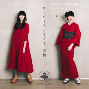 KIMONOMODERNでは、同じ生地で、着物・帯・半衿・三連仮紐・草履など・・・様々なアイテムを展開。<半衿×帯><半衿×三連仮紐>といった組み合わせで、いとも簡単にトータルコーデがレベルアップ。