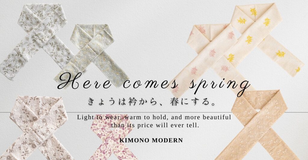 半衿付け不要!最初から可愛い半衿がついている、KIMONO MODERNの半襦袢シリーズもおすすめ