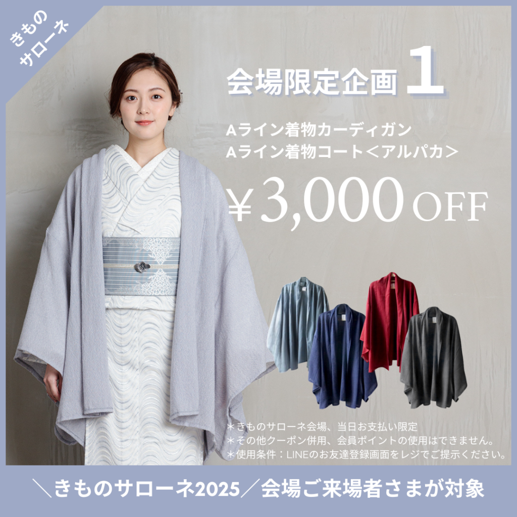 LINEお友達登録をして、きものサローネ会場限定で人気アイテムをお得にGET!