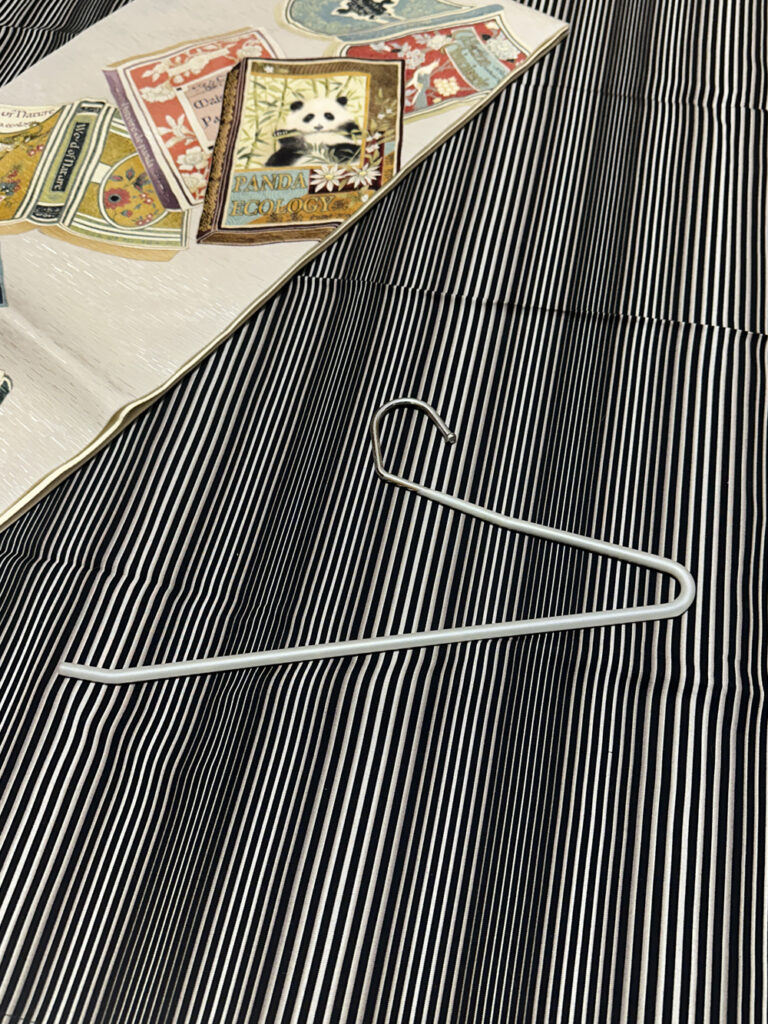 帰宅後、着物を脱いだら洋服ハンガーを使って、背の高いパイプハンガーに掛けて汗を飛ばしています。