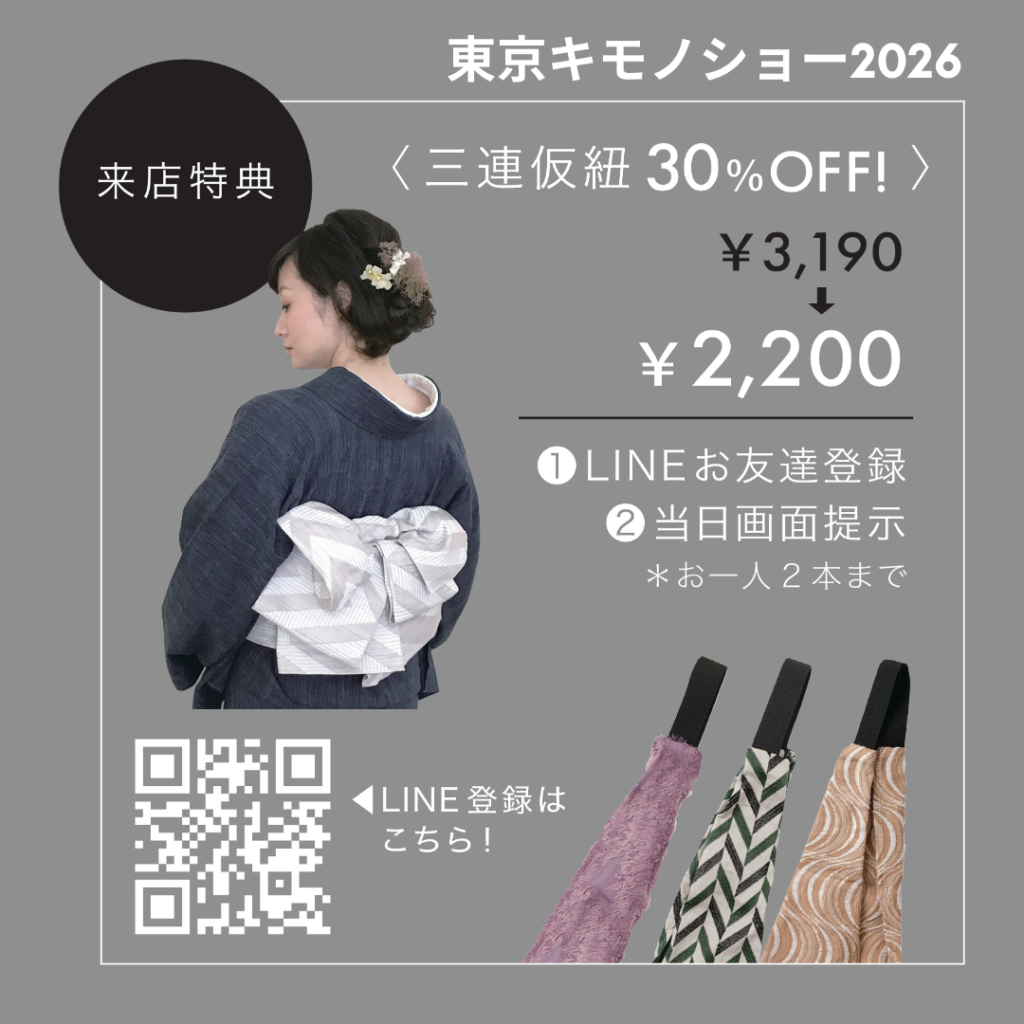 KIMONOMODERN会場にご来場のお客様限定!通常3,190円のレース三連仮紐が、なんと30%OFFの2,200円でお求めいただけます。