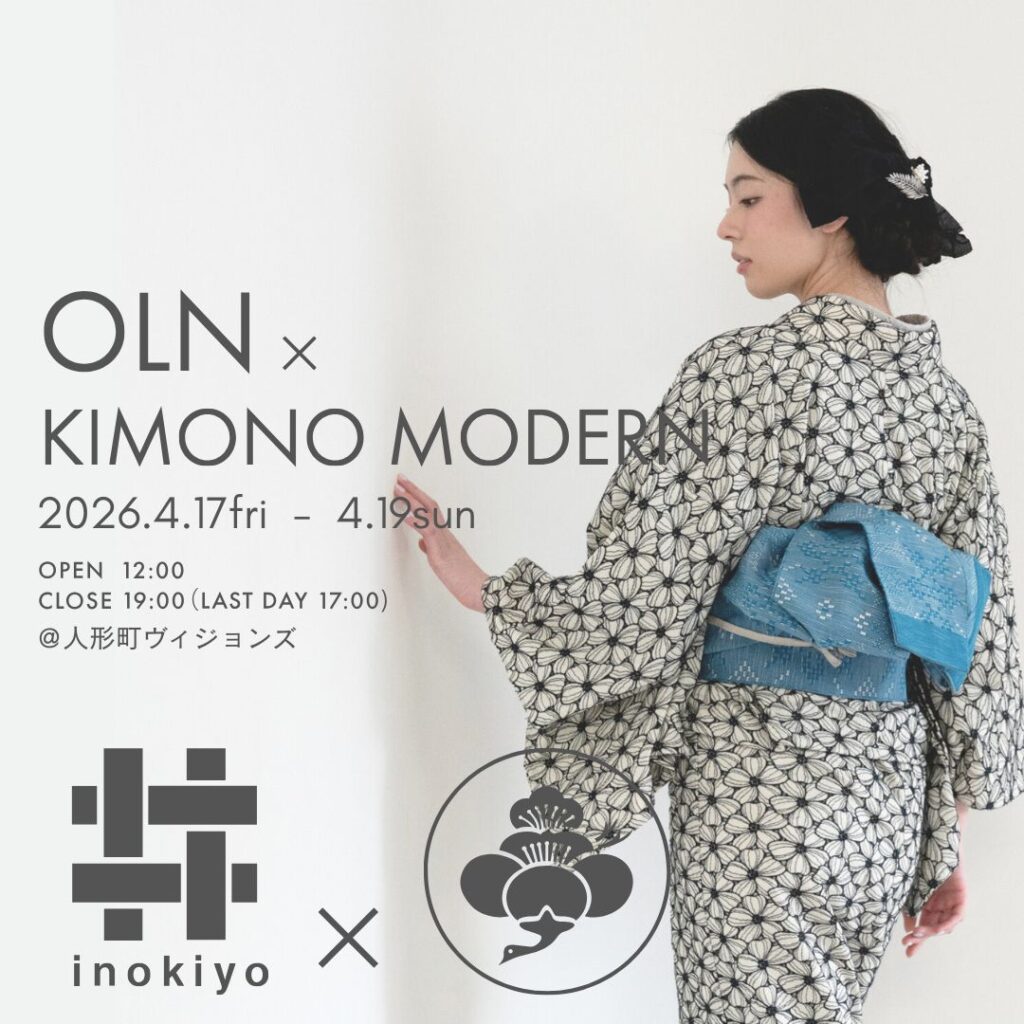 桐生発・手仕事の温もりが息づく「OLN」と、KIMONO MODERNが贈るコラボPOP UP。ワンピースのように着物があなたの日常に寄り添う、そんなきっかけをお届けします。