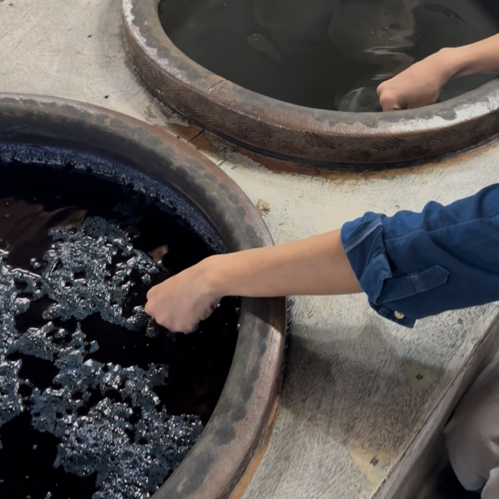 ちなみに10ヶ月の染料はこの日で役目を終え、土に戻すことになっていたそう。地球に優しく循環できるのも、天然染料の天然灰汁発酵建てならではですね。