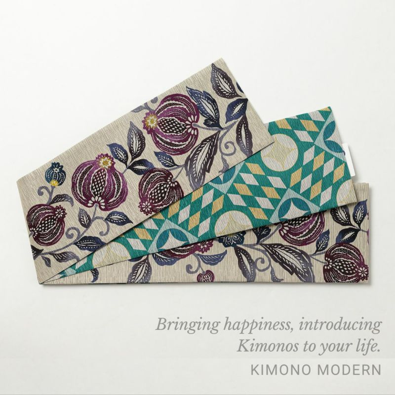 KIMONO MODERNで販売している伊勢木綿はその中でも割と抑えめというか、シンプルなものをチョイスしてるから極端な例としてご紹介できないけど、召しませ花の半幅帯の威力って「多彩な色彩の混在と調和」にあると思ってます。