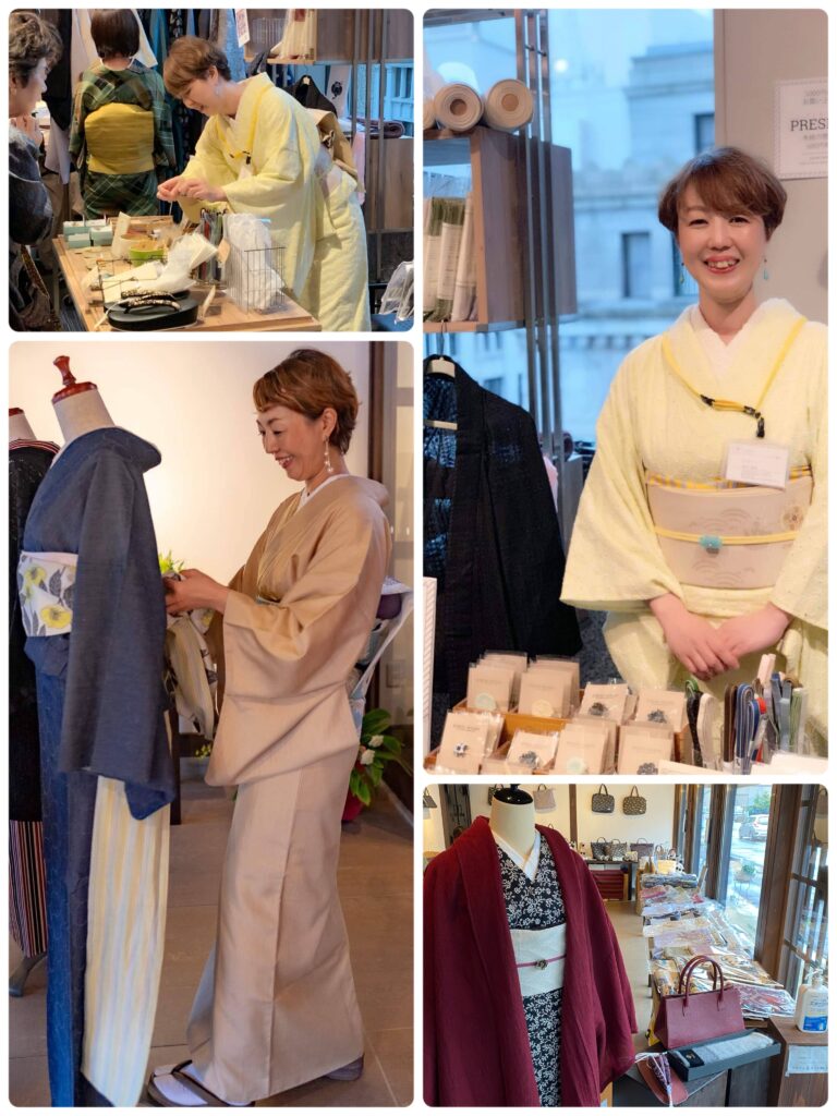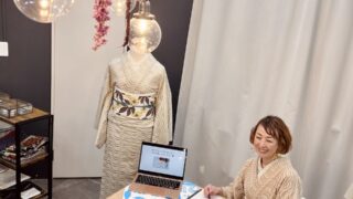 これがご縁でKIMONO MODERNの金澤のポップアップでの着付けLESSONや、東京キモノショーのブースのお手伝いなどもご依頼いただくように。
