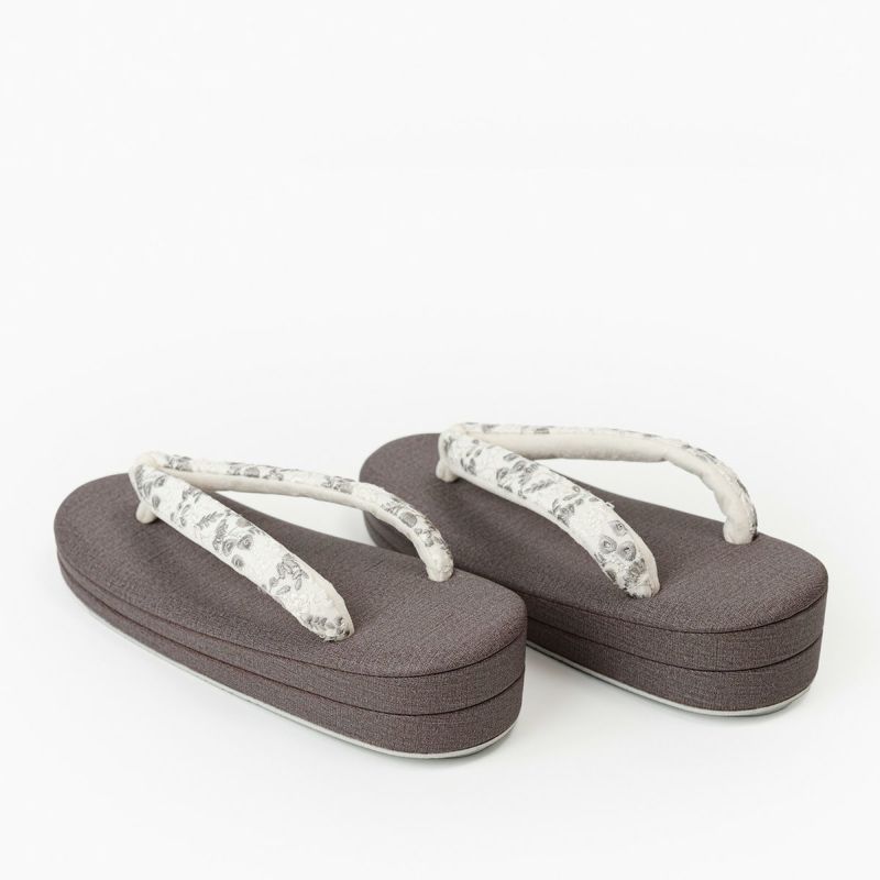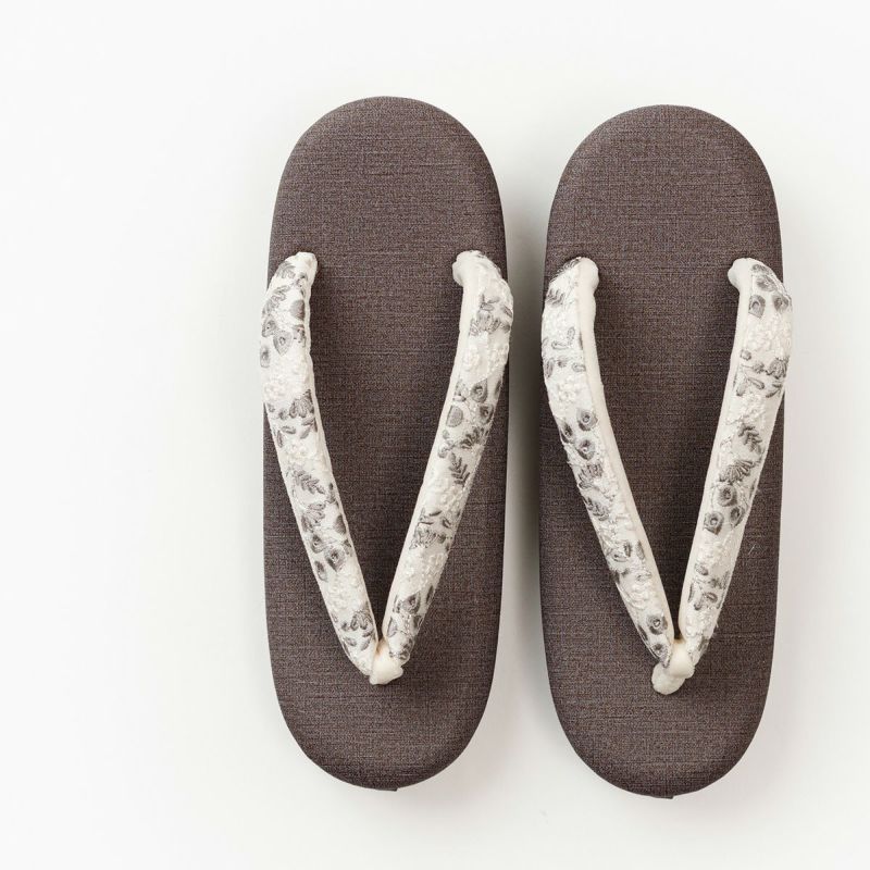 知的で落ち着いた印象のブラウンが鼻緒の華やかさを優しく引き上げ、いつものスタイルをエレガントに仕上げます。