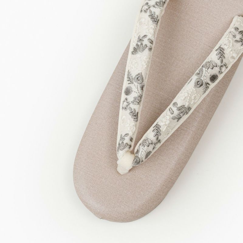 光を透かしたような、透明感のある黄みがかったホワイト。一足目のお草履を選ぶなら、何ものにも染まらないベーシックなブランがオススメ。