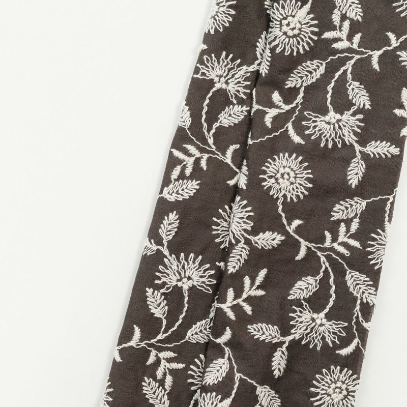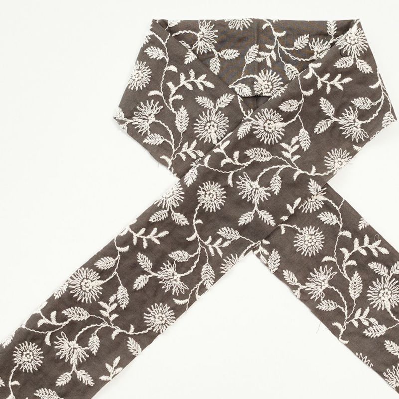 春風に揺られているかのような、軽やかで繊細な花々が愛らしいお半衿。ナチュラルなブラウンやブルーに白い刺繍がまぶしく、お顔映りもワントーンアップしてくれそう。