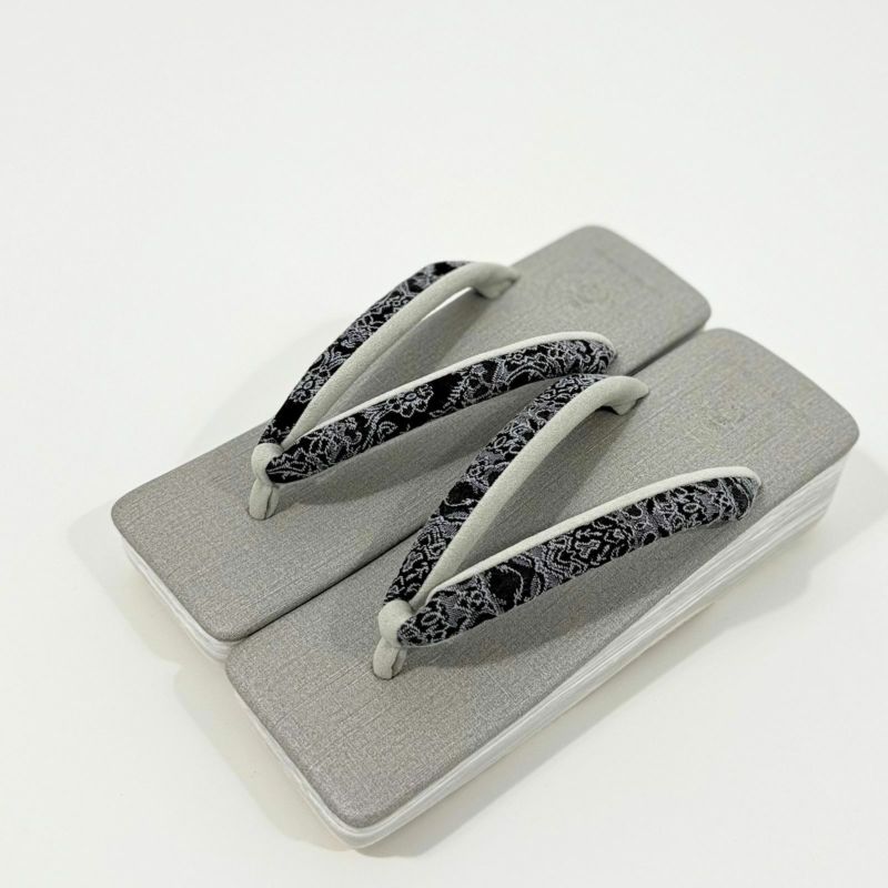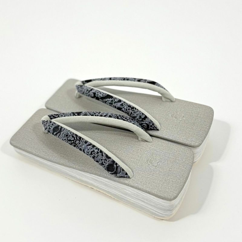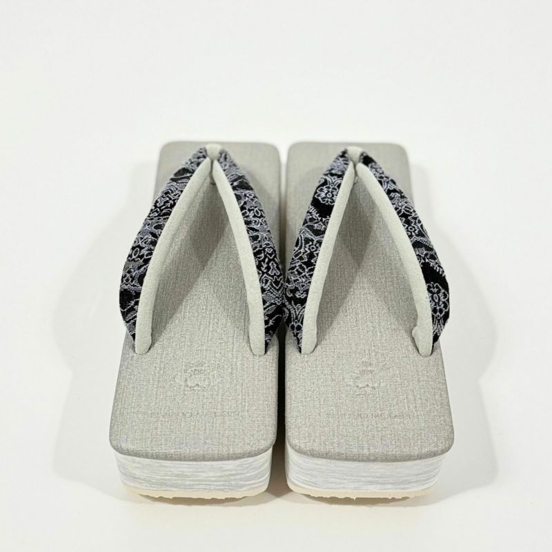 さりげない光沢のあるグレーの台に、立体感のあるBLACKジャガードの鼻緒が、プラチナムな高級感を漂わせます。
