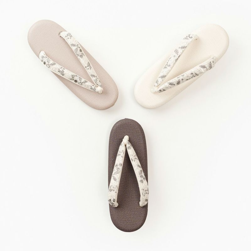 知的で落ち着いた印象のブラウンが鼻緒の華やかさを優しく引き上げ、いつものスタイルをエレガントに仕上げます。