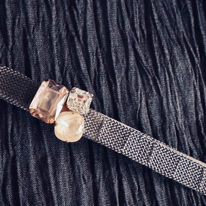 帯の上で、煌めくクリスタル達が奏でる音楽があなたの気持ちに寄り添い、心弾むあたたかなものになるように、という願いと祈りを込めて。