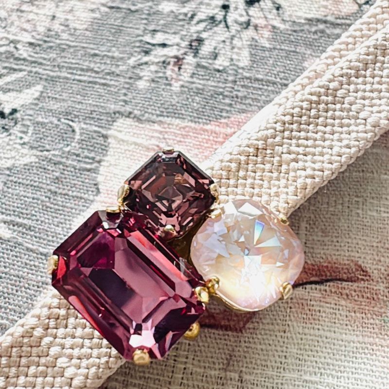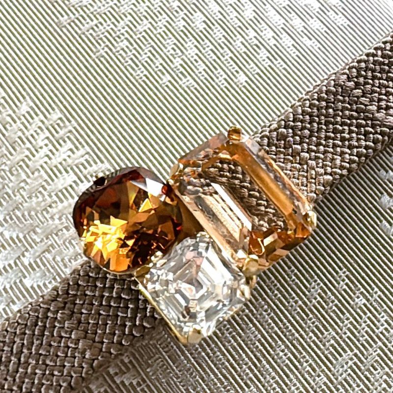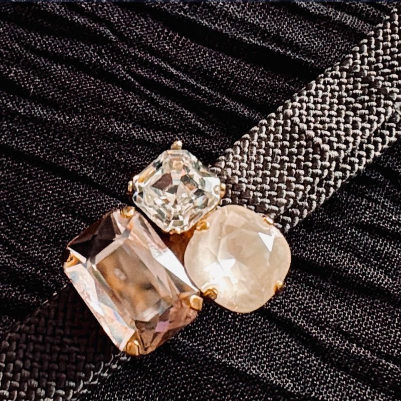ある時から「スワロフスキーの・・・」と謳うことができなり、コロナに入って、スワロフスキーJAPANが撤退したことにより、同社のパーツを手に入れることが困難に。またおそらくはKIMONO MODERNが業界で一番最初に「スワロフスキーの帯留」をリリースしたのだけど、気づけばいろんなところで出回ってしまったのもあり、惜しまれつつもフェードアウトしてしまった商品でした。
