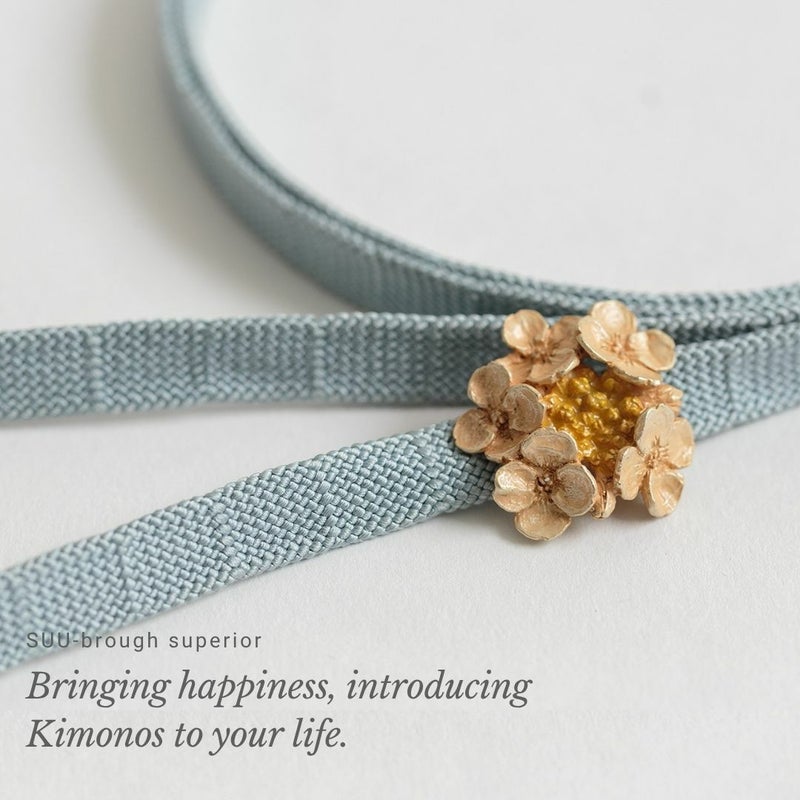 いぶしたような金色とマットな色彩が、ちょっぴりアンティークなテイスト。普段着物につければおしゃれ度もアップします。