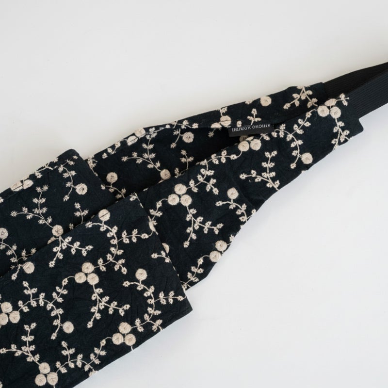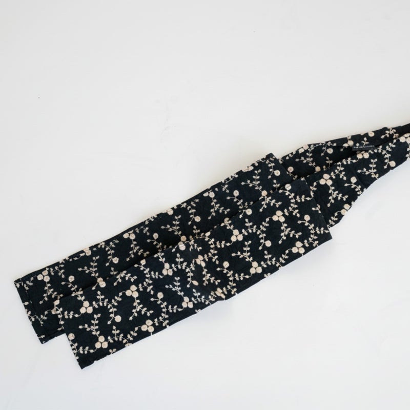 「三連仮紐を隠さず、見せて使いたい」そんな願いを叶える、ノートルダムの庭園シリーズ。ベージュ地に黒のベリー刺繍がリズムを刻むデザインは、帯揚げ代わりに覗かせることで、帯まわりに洗練されたアクセントを添えてくれます。迷った時に頼れる黒の引き締め色が、どんな帯や着物とも相性抜群。ベージュとの組み合わせが、甘さを抑えた大人の洗練を演出します。お洒落と便利を賢く両立し、日常を少し特別に変えてくれる一本です。