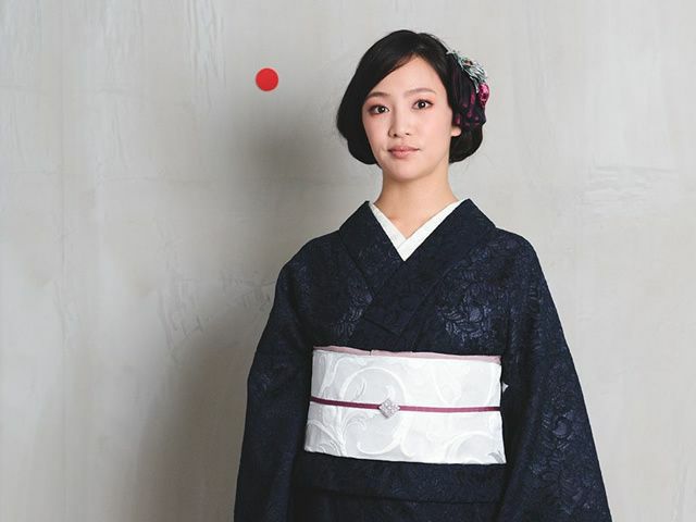 3. <レンタル>DRESSY着物-コードレース紺瑠璃×博多織 八寸名古屋帯ーアラベスク(2週間レンタル・買取不可)