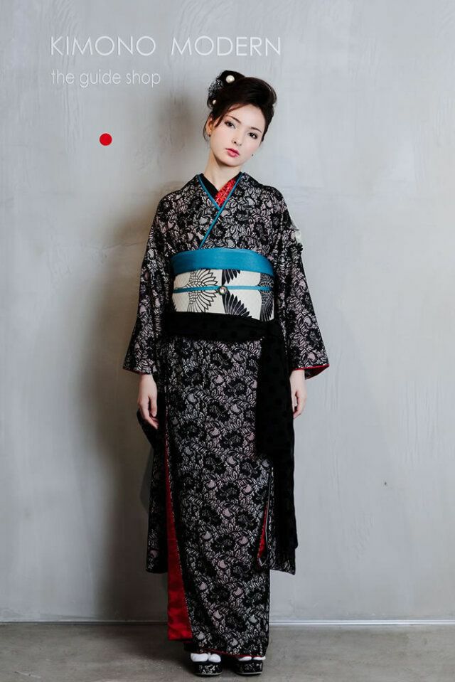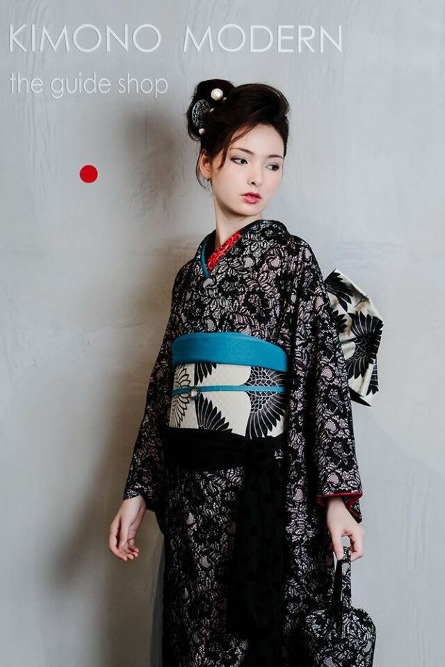 ・DRESSY着物 black (ポリエステル100%、レース部分:レーヨン70%、ナイロン30%) ・正絹袋帯-鶴の調べ MONO(絹100%) ・長襦袢 (ポリエステル100%) ・伊達衿 (二越ちりめん ポリエステル100%)
