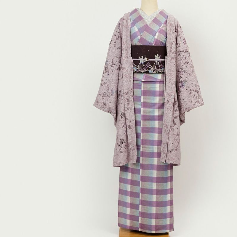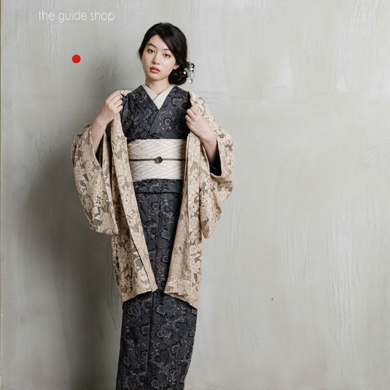 おめかしの日の、ジャガード着物-Arabesqueアラベスク(3色・Mサイズ)-Noble Navy