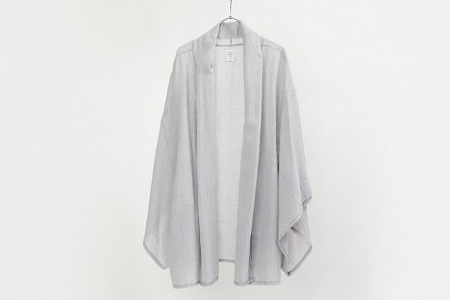 ウールガーゼ(ウール100%)で薄いのに、意外と暖かいという嬉しいギャップ。細めの糸で編まれたザックリした風合いに、ふんわり軽くてやさしい手触り。それでいて ストン、と程よい落ち感と美しいドレープが、カジュアルにもきれいめにもマッチします。