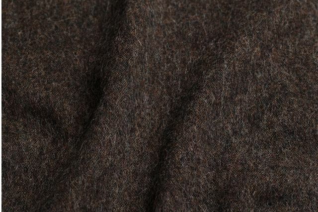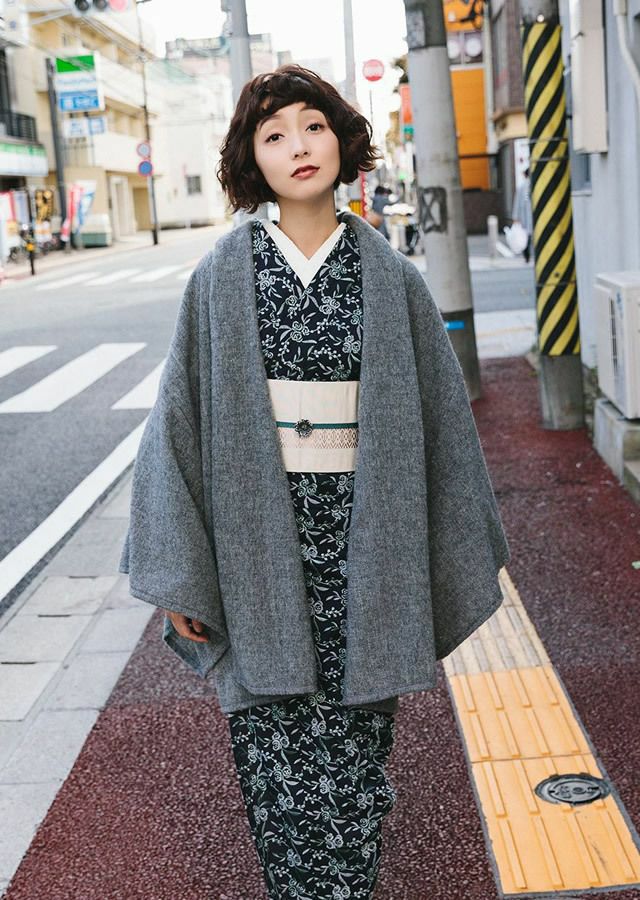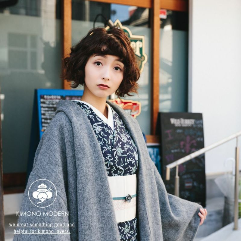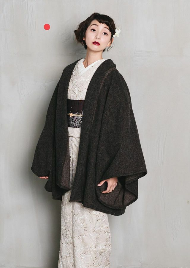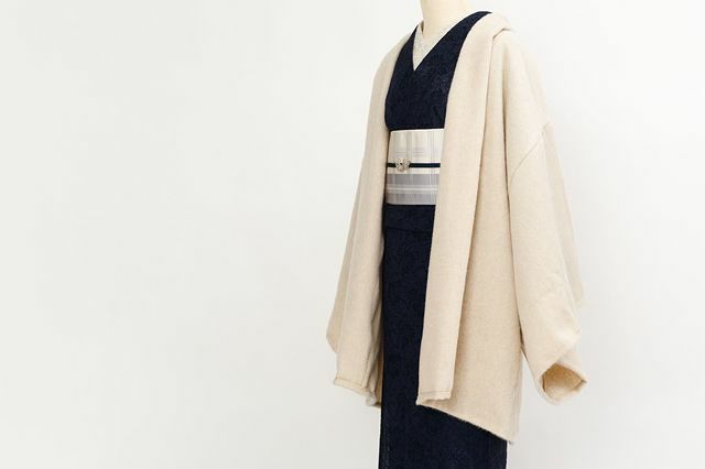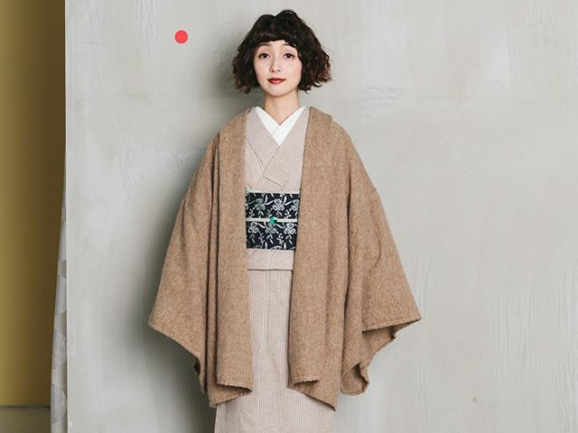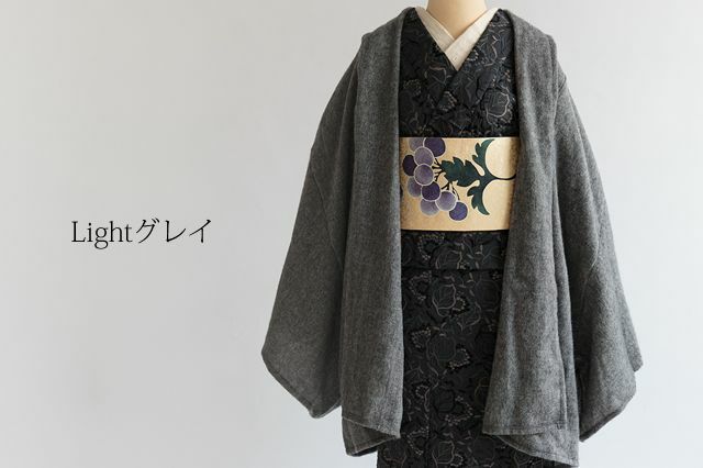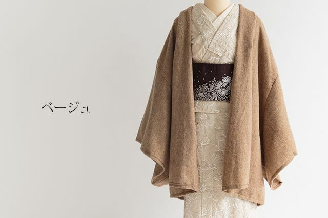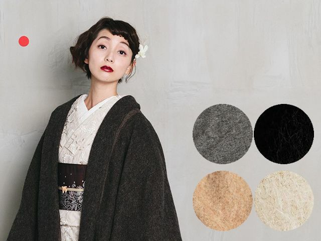 永遠の定番・ブラック。あわせる着物を選ぶことなく、コーディネートを引き締めてくれます。ラフなシルエットなので、黒でもクールになりすぎないのもいいところ。ドレープ感のあるシルエットと、アルパカのリッチな素材感が、下手をすると安っぽく見えがちな「黒」をアップグレードしてくれています。