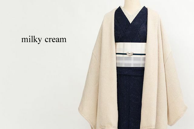 衿幅が広めなので、まるでストールをかけているようなドレープ感が出ます。衿ぐりも着物に合わせて深めにデザインしているので、衿に沿ってゆったり羽織っていただけます。