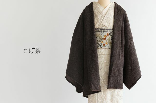 キレイ見え、には素材にもこだわりたい。毛足がやや長めの、アルパカ混素材なので肌触りよく高級なテクスチャ。裏地はあえてつけず軽さを重視。普段着はもちろん、正絹のお着物に合わせても遜色なく品良く仕上がります。