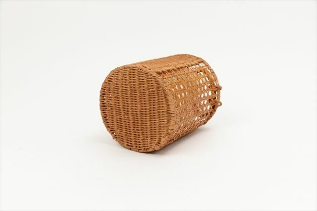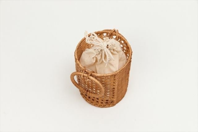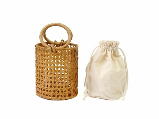 <夏のカゴbag>透かし編みーラタンの円筒バック(内袋付き・直径17cmx高さ20+12cm・別送品)