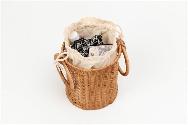 内袋にベーシックなベージュの巾着がついていて和洋兼用で使えるフレキシブルさも推しポイント。