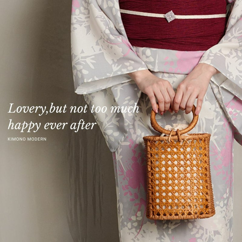 ラタンの素材感を活かしたバッグは、夏キモノや浴衣の雰囲気とも相性よし。程よい存在感で、コーディネートを引き立ててくれます。