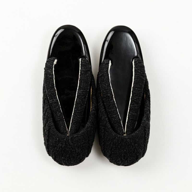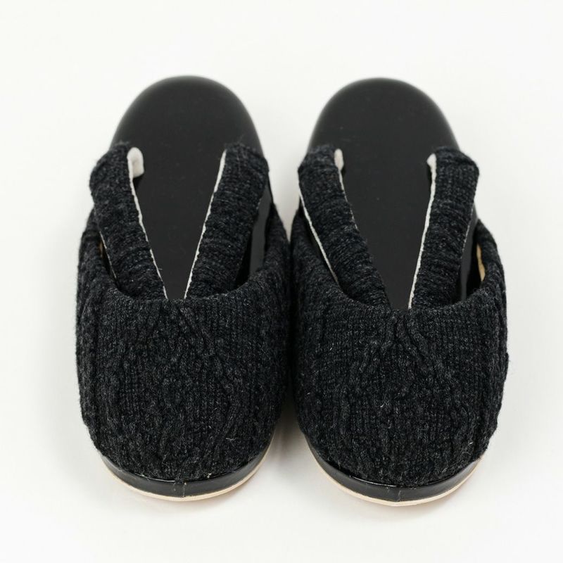 鼻緒とつま先にモコモコのケーブルニットがあしらわれた、立体感のある防寒草履。