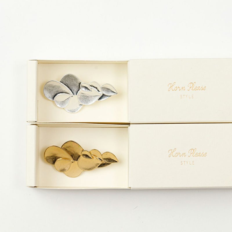 丸みのある葉が重なり合ったような、立体的でシンプルなブローチです。