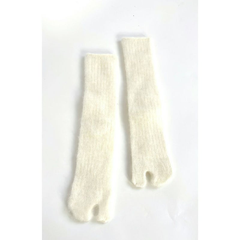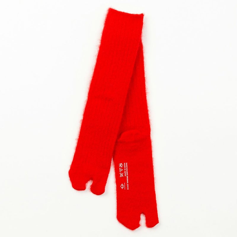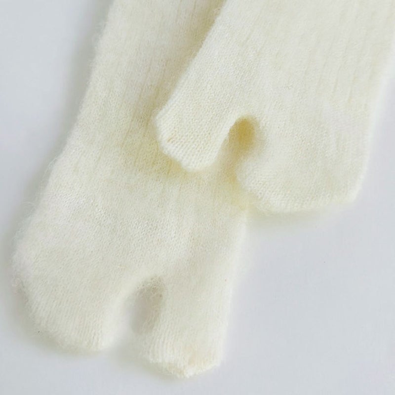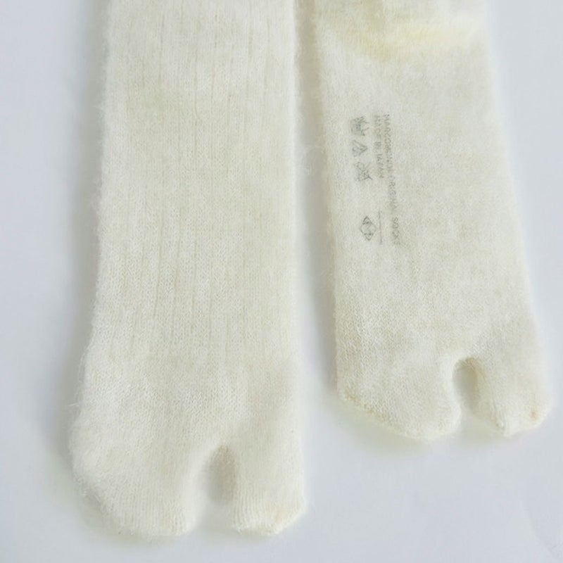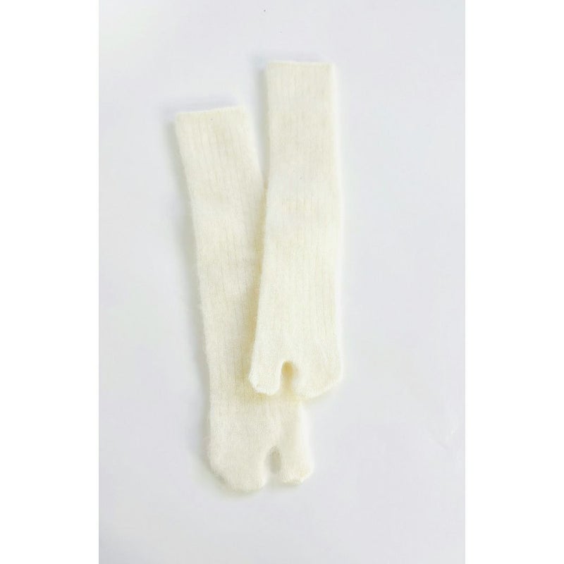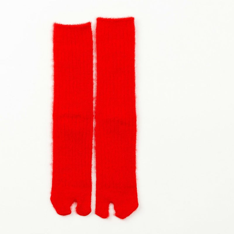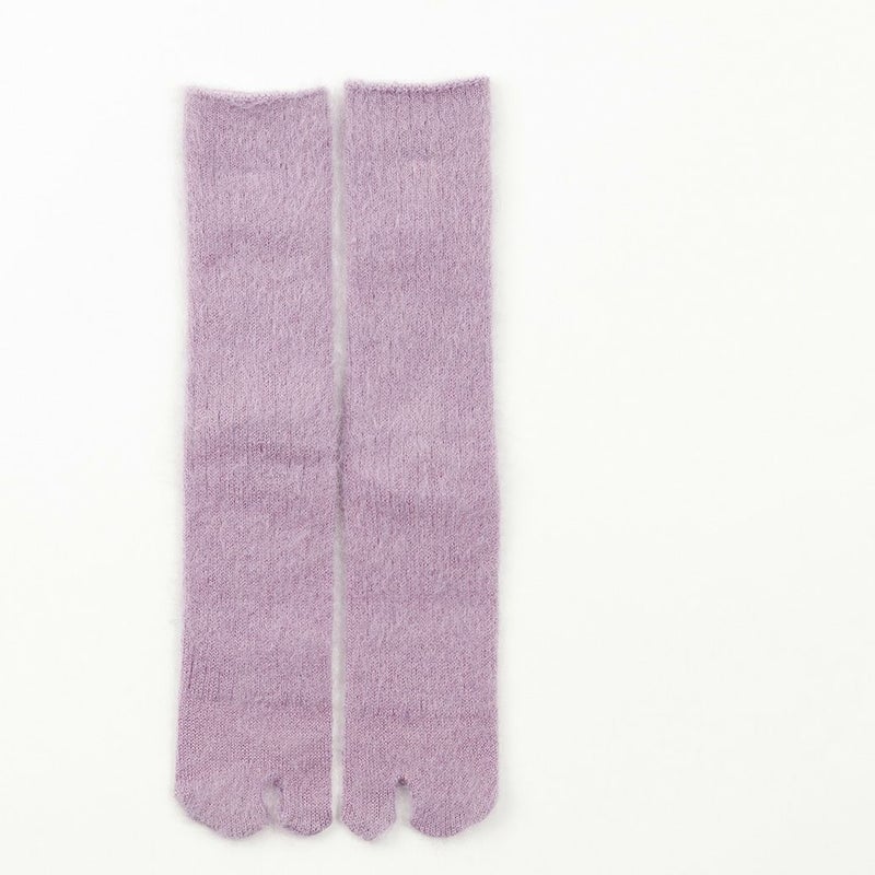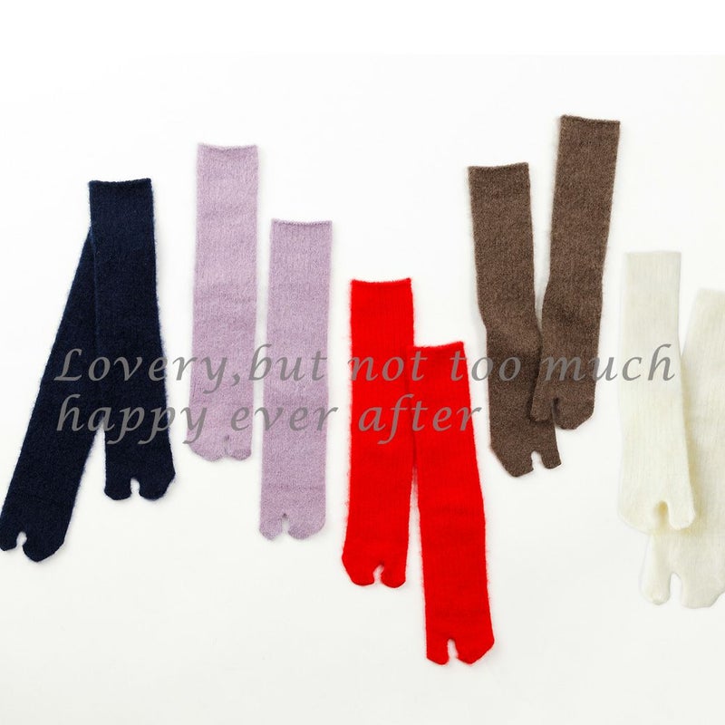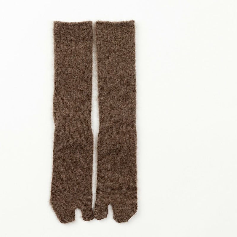 ふっくらもこもことしたモヘア素材の、暖かなたびソックス。