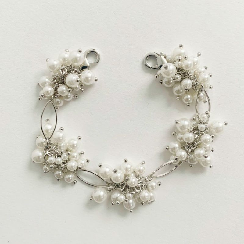 ピアスや髪飾りまでパールで統一して、ドレッシーな装いにするのも素敵。
