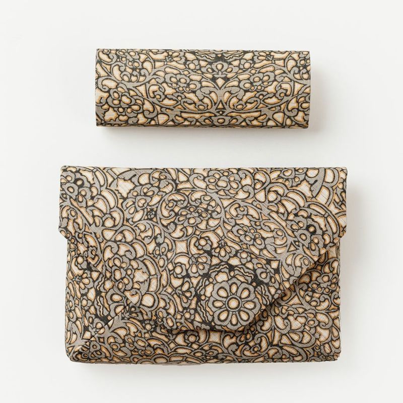 宝相華(ほうそうげ)紋様が全面にめぐらされた豪華な蔓草花が目を引きます。プレゼントにも。