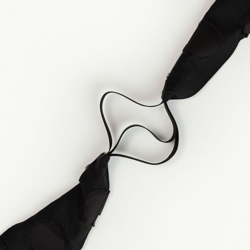 POPに大胆な水玉を縁取るように凹凸のあるカットジャガードで表面にさりげない模様が浮かび上がる、上質な三連仮紐。