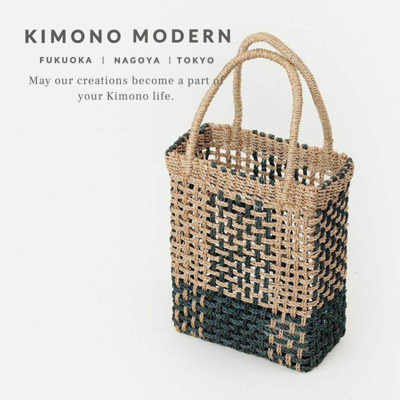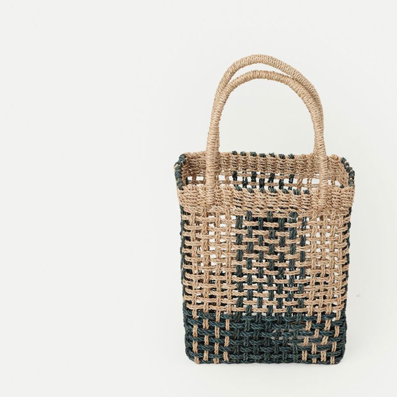 <アバカの編みバッグ>シカクな格子-バイカラーMONO(W20×D10×H25cm・持ち手の高さ13cm)