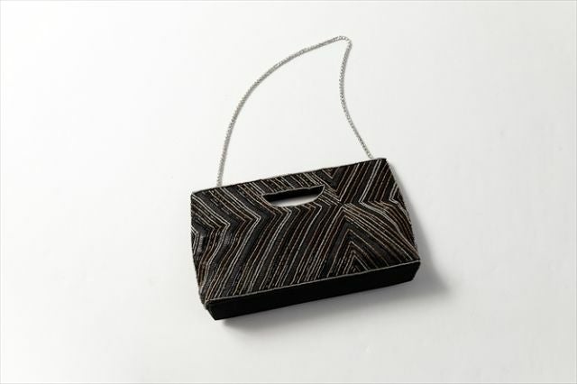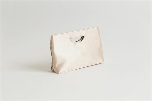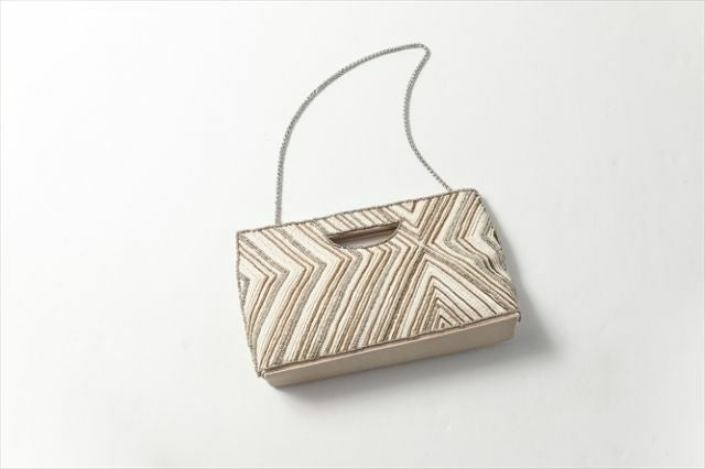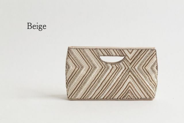 ビーズ、スパンコールをたっぷり使用したくり手クラッチ。上品な光沢感のある素材とマットな素材を合わせることで大人な印象に仕上げました。