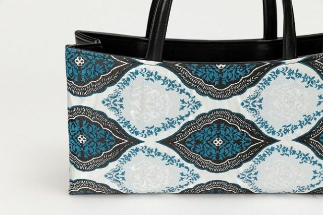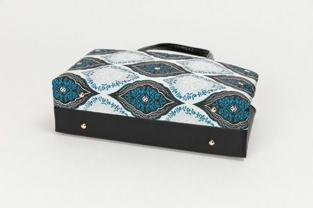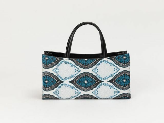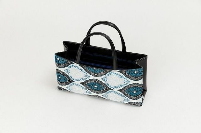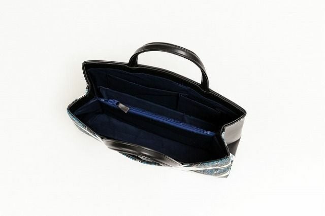 クラシカルなデザインと、気品あふれる青と白の美しいコントラスト。そして博多織ならではの上質な風合いが集結した、美意識の高いバック。