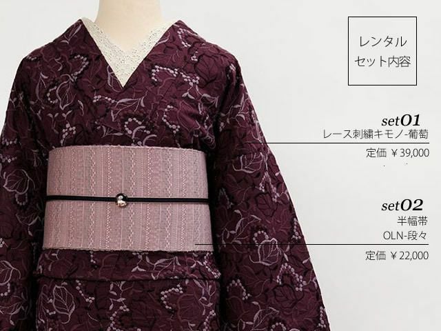 レンタルセット内容 ・レース刺繍着物-葡萄 定価 39,000円