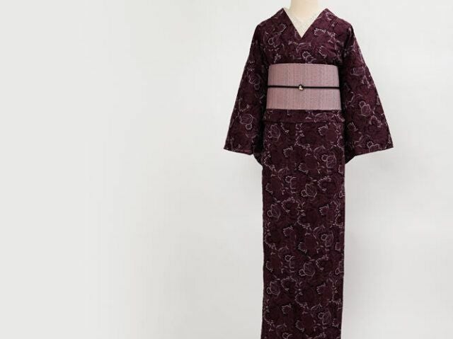 set01 レース刺繍着物-葡萄-葡萄酒