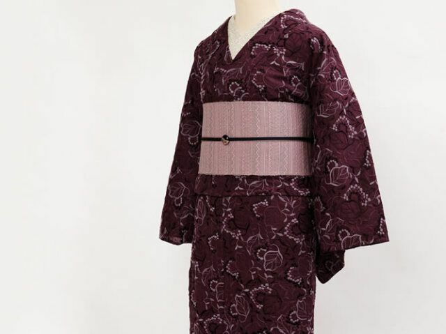 <レンタル>レース刺繍着物-葡萄+半幅帯-OLN-段々(2週間レンタル・買取可)