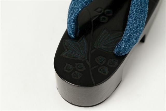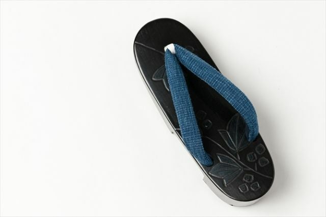 ツヤッと光る漆塗りの黒い台に彫られた、スズランと植物の蔓、そして木の実。モダンなデザインで脱いでも可愛い、ちょっぴり贅沢なKIMONO MODERNオリジナルデザインの鎌倉彫りの下駄ができあがりました。