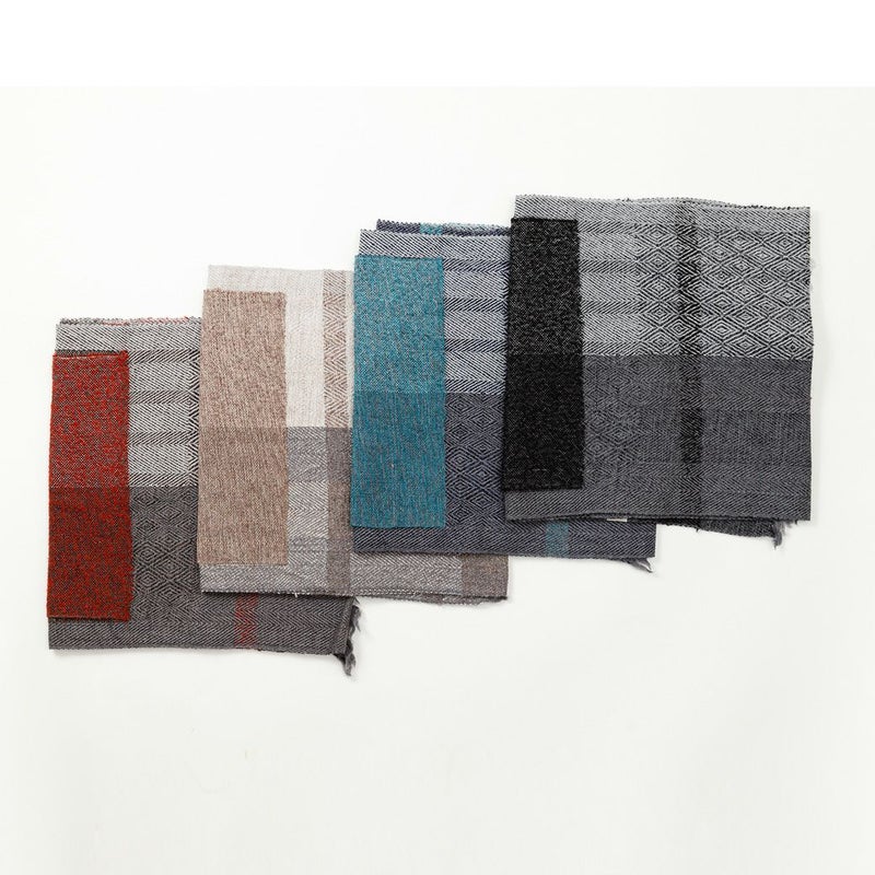 顔まわりの印象を彩るものだからこそ。心を込めて織られた手仕事の暖かな風合いをまといたい。手元に置くのはそんなものだけ。素朴であたたかなOLNのストールをお届けします。