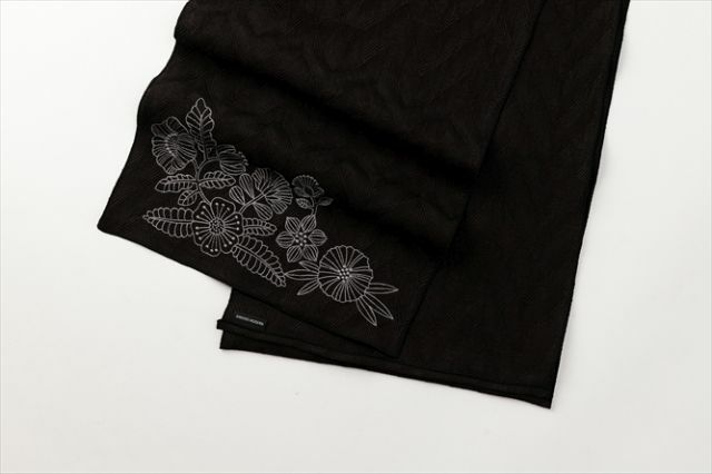 ちょっぴりスパイシーでモードな雰囲気を漂わせるブラックは、兵児帯の柔らかな質感とワンポイントの花柄が程よくカジュアルダウン。