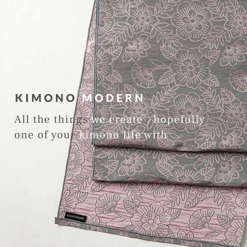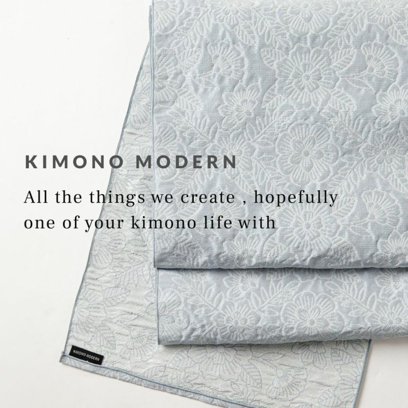 装いに大人の甘さを呼び込むグレイッシュブルーの兵児帯。深みのあるシックなカラーと無地感覚の繊細な柄は、艶やかさも相まって、カジュアルだけどエレガントさも外したくないときにぴったり。
