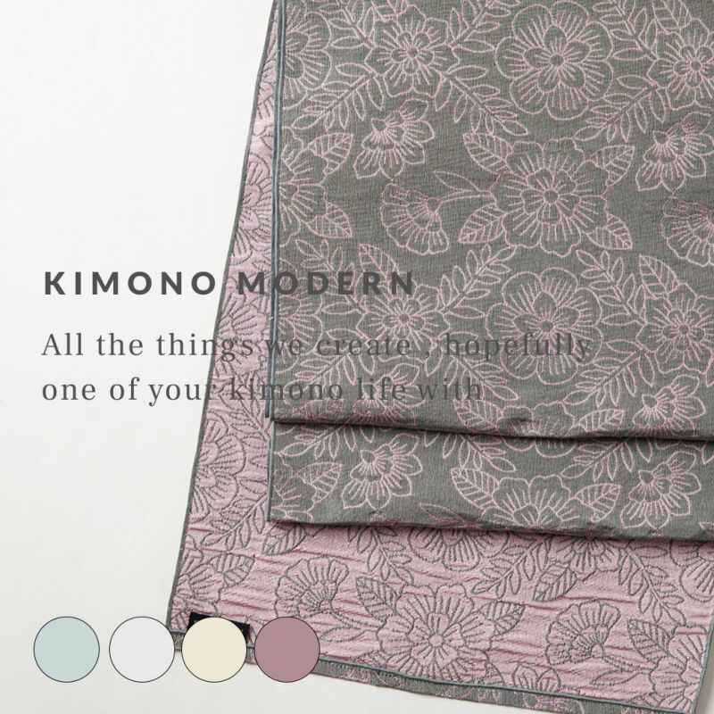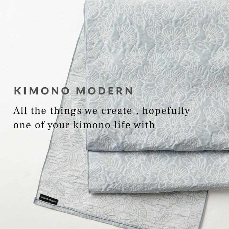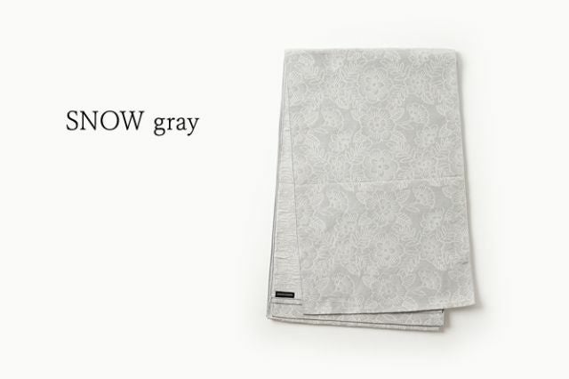 雪景のような穏やかで凛とした空気感を放つライトグレーの帯。あわせる着物や小物を選ばず、季節感にも左右されないベーシックな1本です。