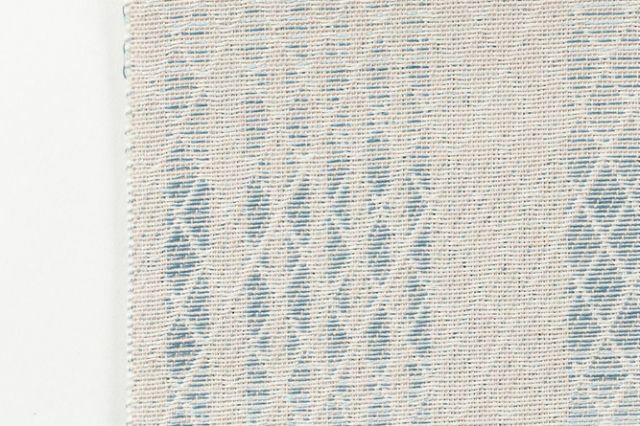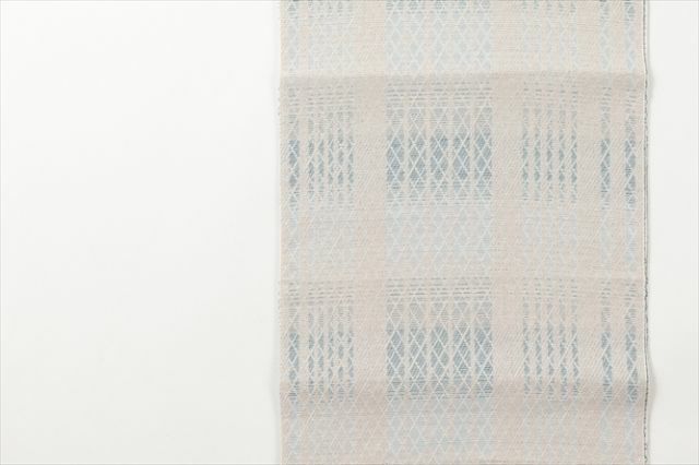 上品な菱形格子を、清涼感を誘う淡い寒色系で彩った麻の名古屋帯。儚げなグラデーションに仕上げることで、コーディネートに夏らしさと端正な美しさを添えてくれます。