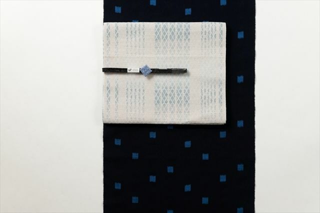 <麻の織帯>兵児帯、名古屋としても使える!菱格子-ICE(麻100%)