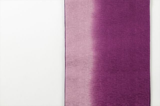 じゅわっとにじむようなみずみずしいぼかしで、コーディネートに優美さを演出してくれる麻の染め帯。単仕立てなので軽く、兵児帯としてはもちろん、しっかり張りのある素材なので名古屋帯としてもお使いいただけます。