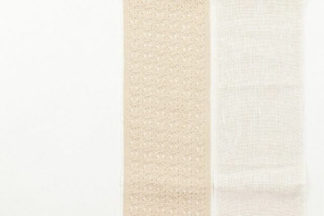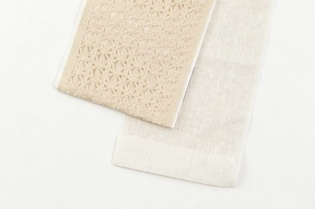 ざっくり編まれたような繊細な刺繍模様で軽やかな装いを楽しめる半幅帯「amam」シリーズ。