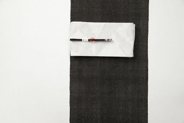 色彩のコントラストが抑え目なので、シックで上品にまとまりつつも、隠れるようにして見え隠れする芭蕉柄が大人のアクセントとしてコーディネートを引き立ててくれます。